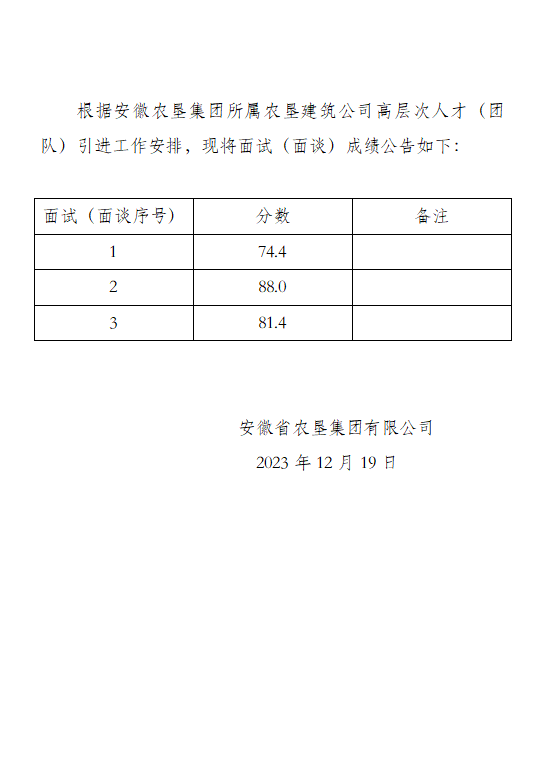 开云手机在线登录入口集团所属农垦建筑公司高层次人才引进面试(面谈)成绩公告