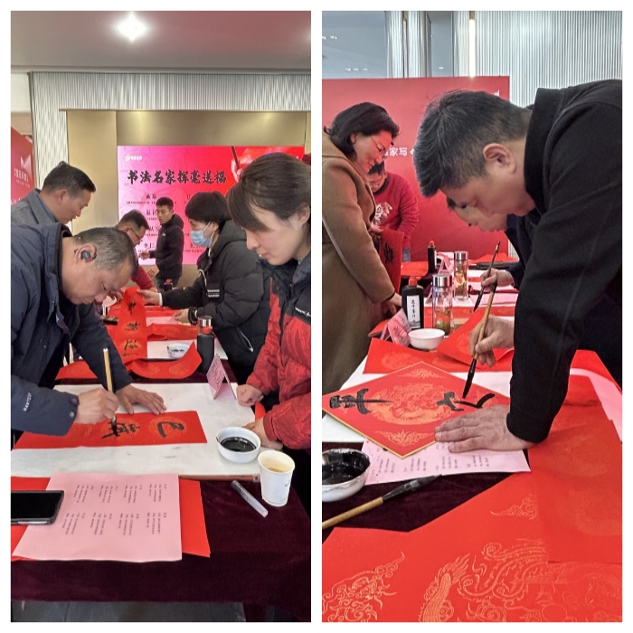 1月11日,一场年味十足的“写春联、送祝福”志愿服务活动在通和星辰同辉营销中心开展,这是通和合肥公司党支部与安徽省青年书法家协会共同开展公益服务的第二年。活动现场,安徽省青年书法家协会主席戴瑞带领8名青年书法家义务为小区业主、一线施工人员书写春联、福字等。