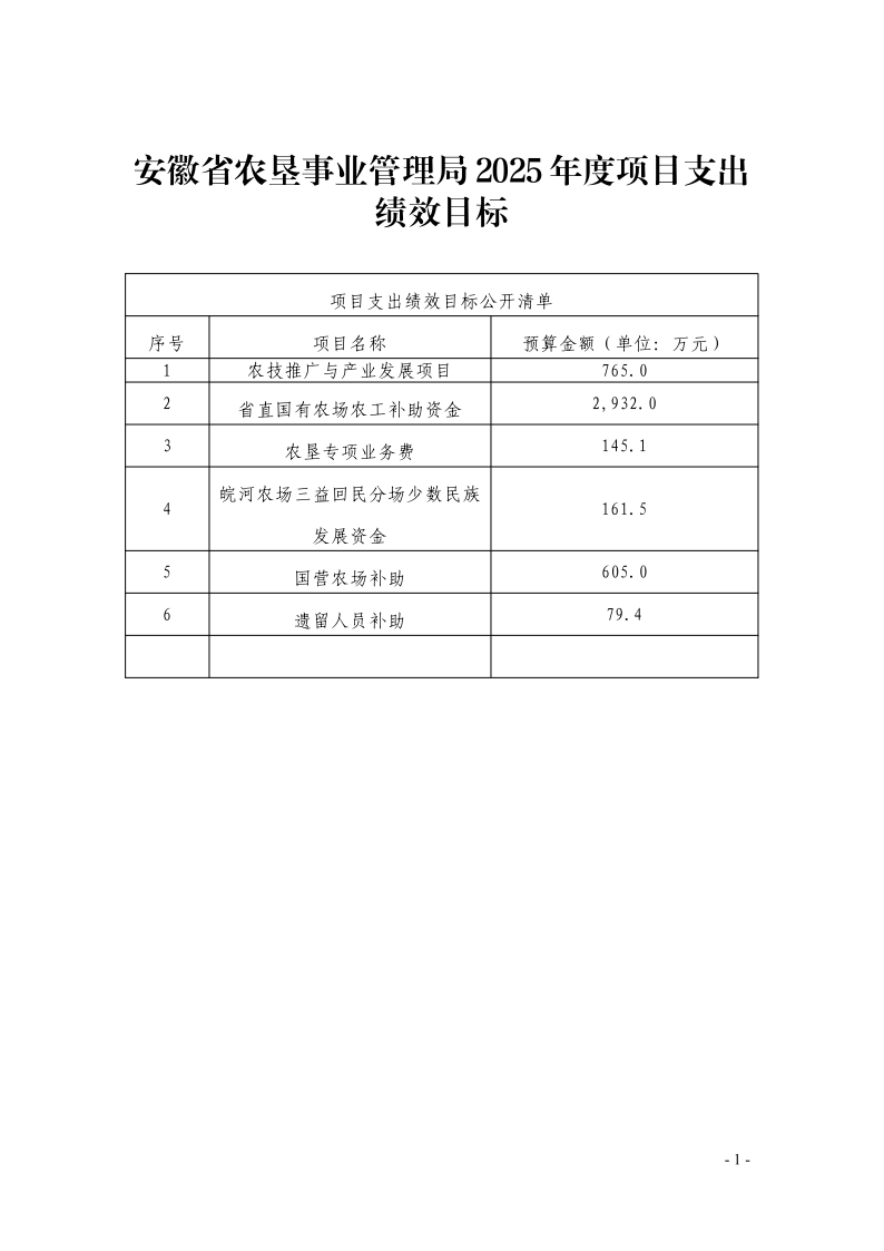 开云手机在线登录入口:安徽省农垦事业管理局2025年度项目支出绩效目标.pdf