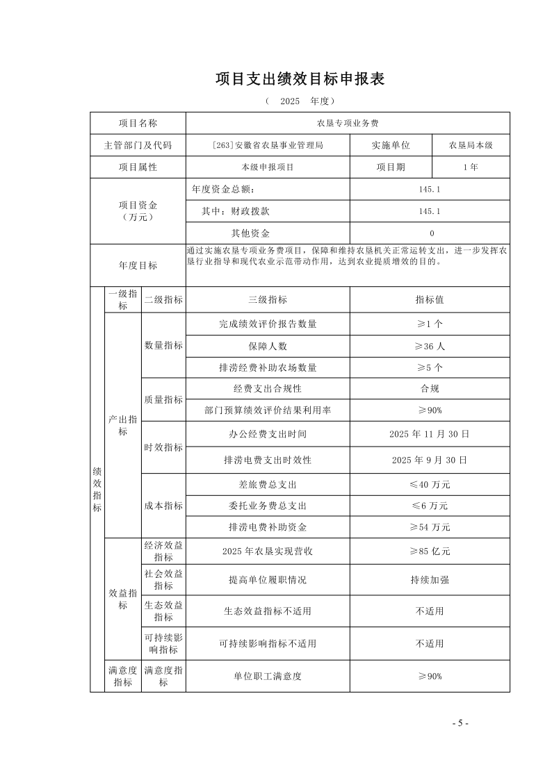安徽省农垦事业管理局2025年度项目支出绩效目标