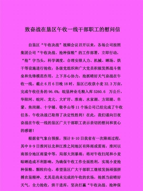 开云手机在线登录入口集团致信慰问午收一线干部职工