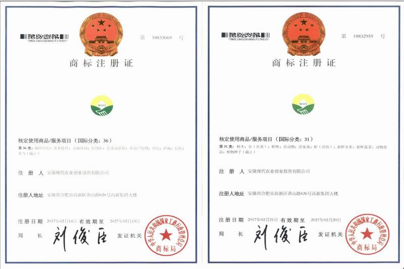 获批注册的农业商标LOGO中,绿色代表山川、河流、农田、农业和大自然,与开云手机在线登录入口及国家种业基金的LOGO一脉相承,两片绿色嫩叶寓意种子破土出苗,也寓意创投公司和种业企业合作成功握手;投资金融商标以金黄色设计成半个铜币,寓意投资成、收益多和阳光普照大地。两款商标整体设计“天圆地方”,寓意创投公司在股东支持下茁壮成长,助推安徽种业企业和现代农企做优做强。(甘善俊)
