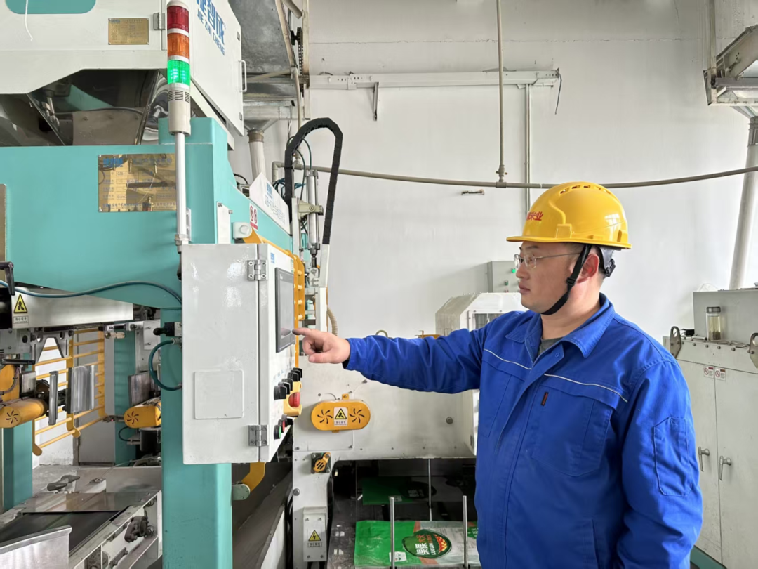 倮倮米业生产车间工人在操作加工设备(王玮玥 摄)